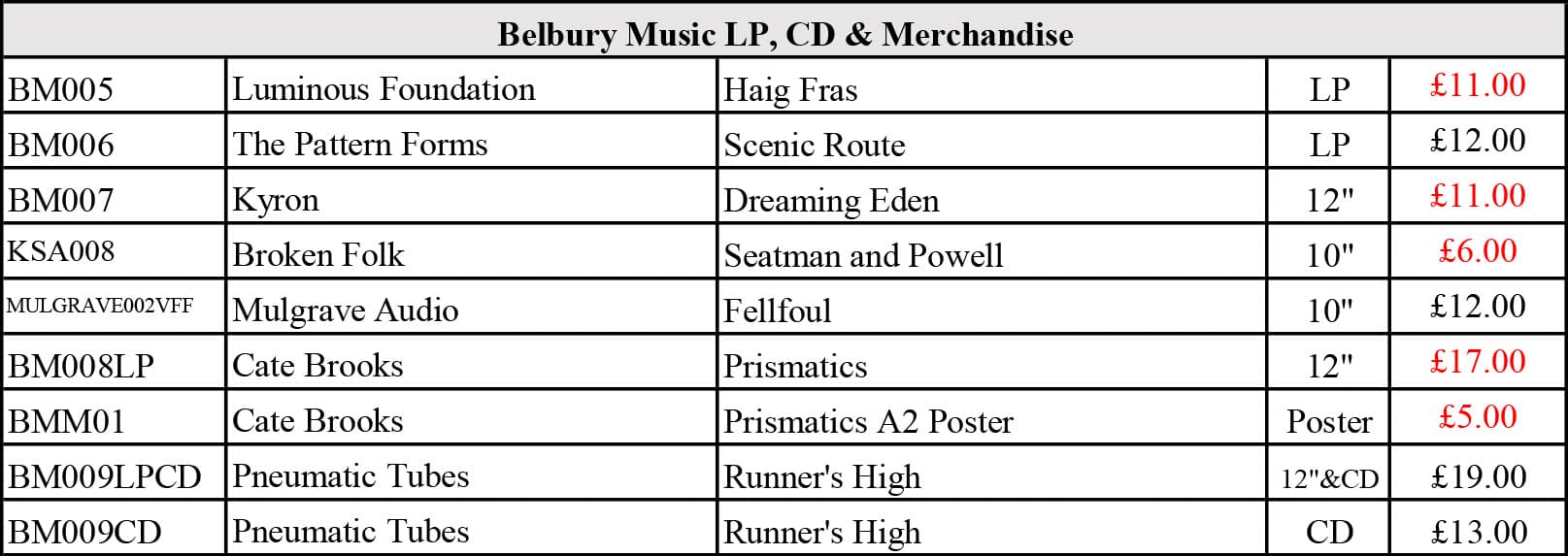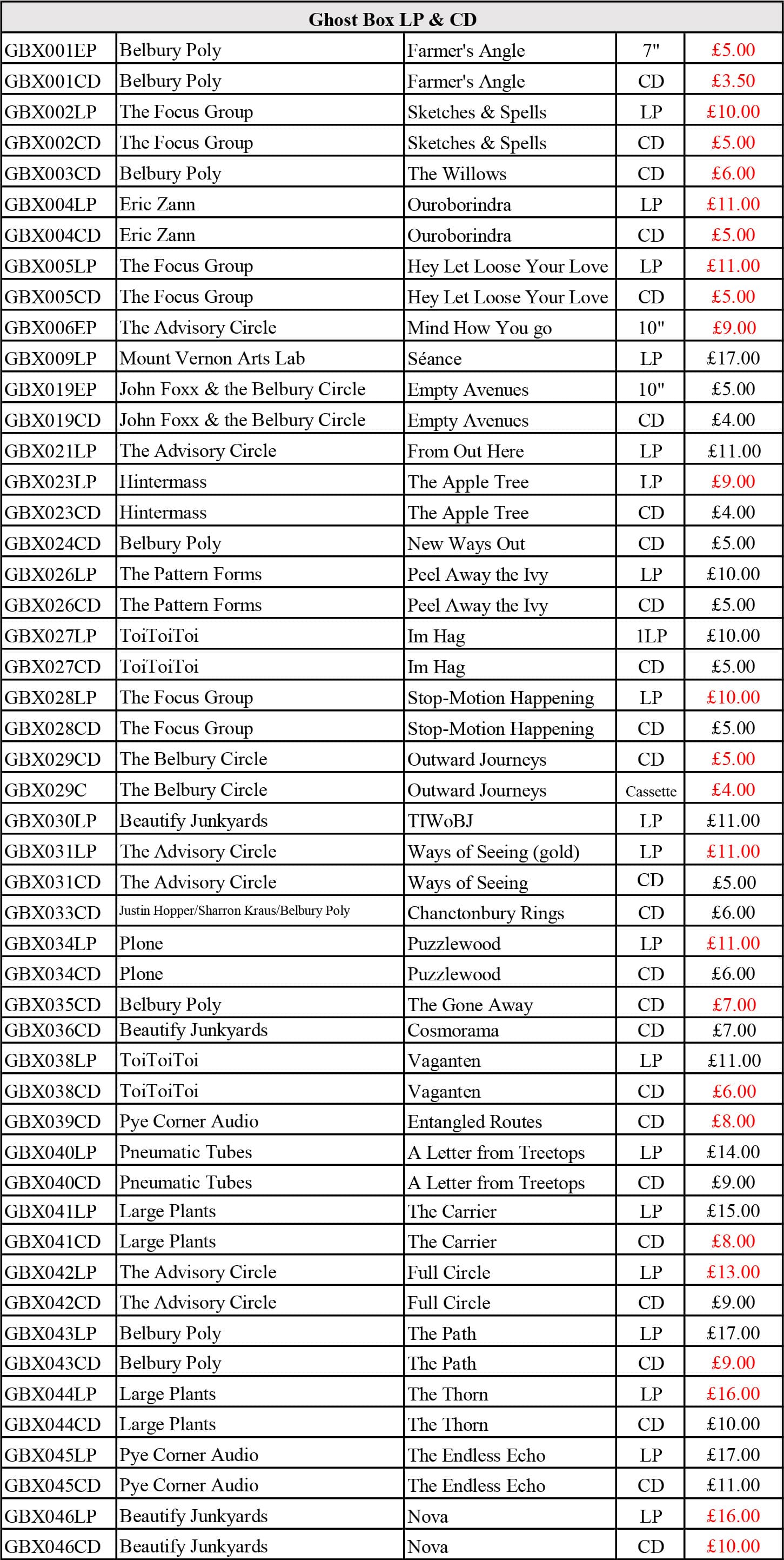 Especially on older titles that are nearly sold out. Vinyl LPs are as low as £9.00, CDs from £5.00 and 7" singles from £2.75 !!!!